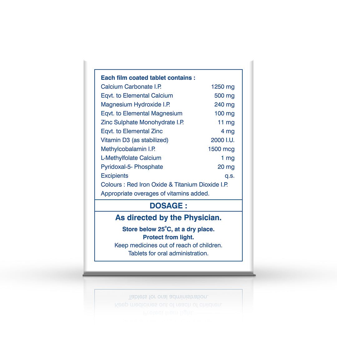 Calcimax Total is a customised complete formula for pregnancy. Packed with essential nutrients like calcium carbonate, vitamin D, methylcobalamin, magnesium, and zinc, it’s your ultimate support system. Safeguard your bones, prevent osteoporosis, and ensure healthy fetal growth. Calcimax Total is recommended to prevent pregnancy complications like pre-eclampsia and placenta abruption. With just what you need, it’s your step towards a healthier pregnancy and stronger bones.