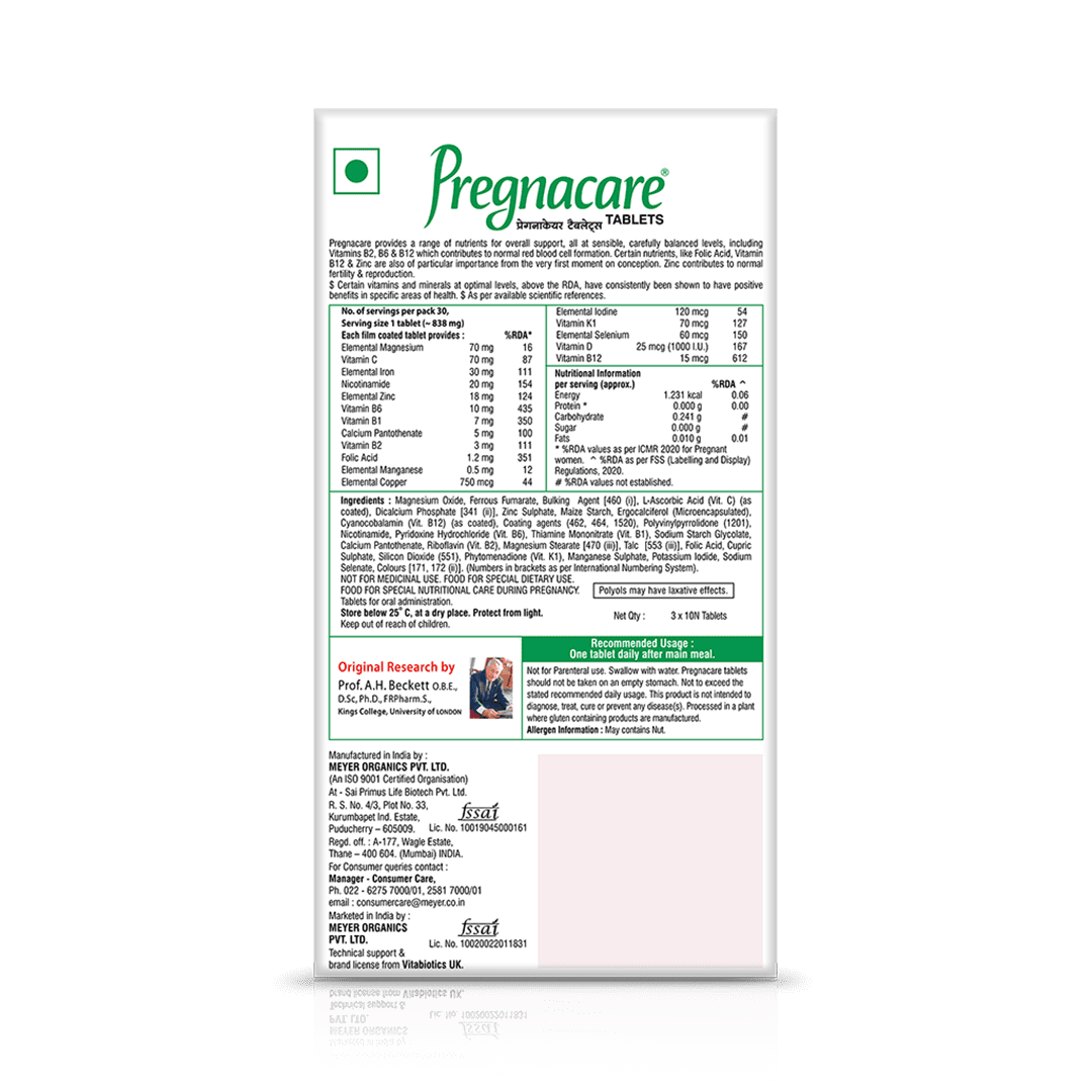 More than just a folic acid supplement, Pregnacare provides a complete nutrition before conception & throughout the pregnancy. It is scientifically formulated combination of essential nutrients which plays an important role during the full nine months and contributes to normal development of foetus & prevents risk of pregnancy complications.