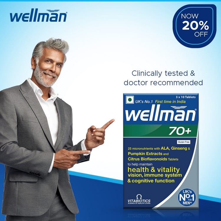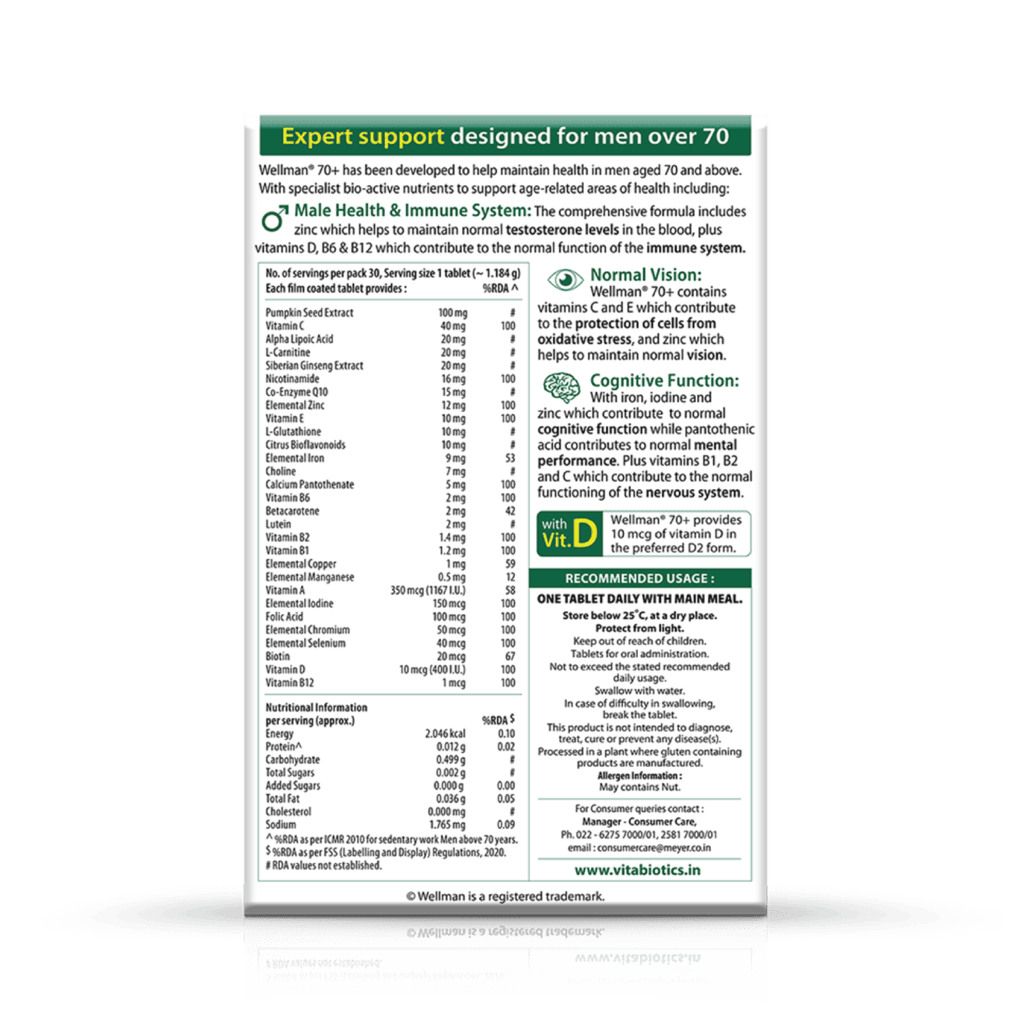 From Wellman, the UK’s renowned men’s supplement brand, now available in INDIA, empower your prime years with Wellman 70+, your ultimate companion for vibrant health and vitality.